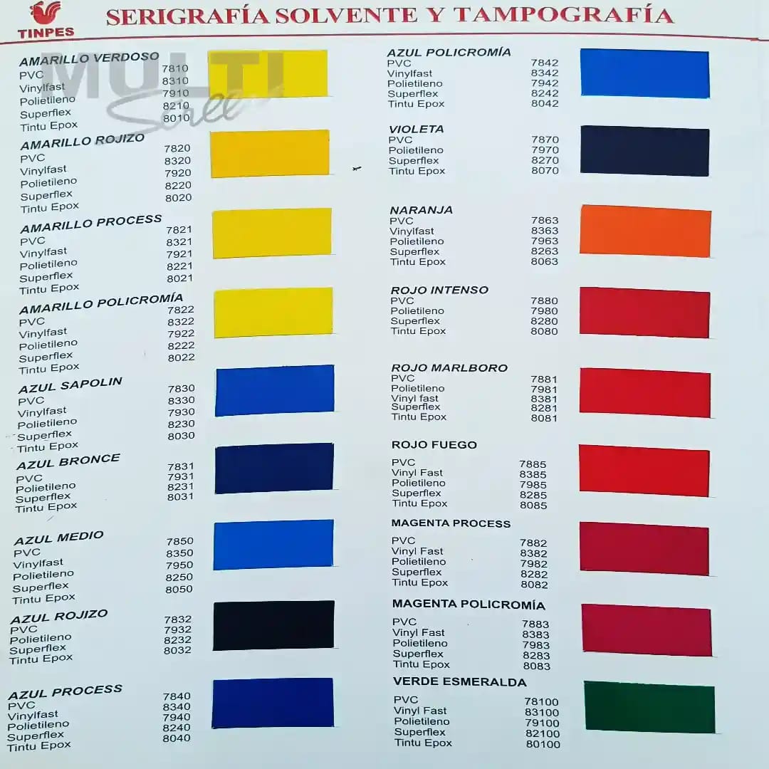 Tintas Pvc, Polietilento y Printo de marca TINPES en diferentes presentaciones.
